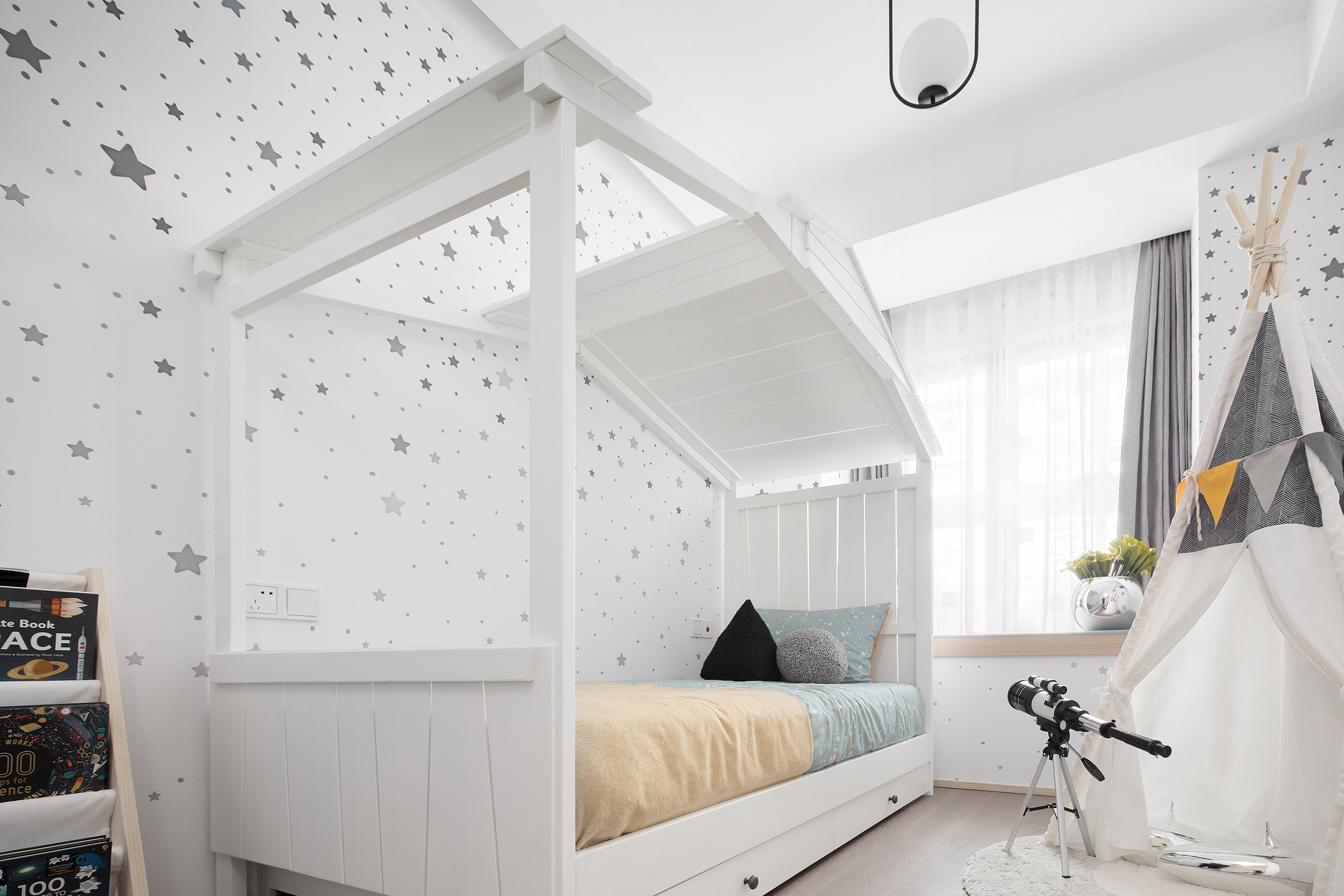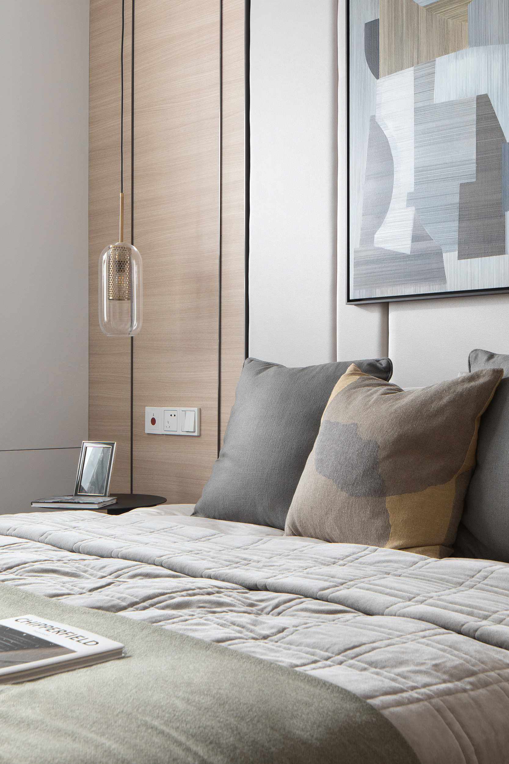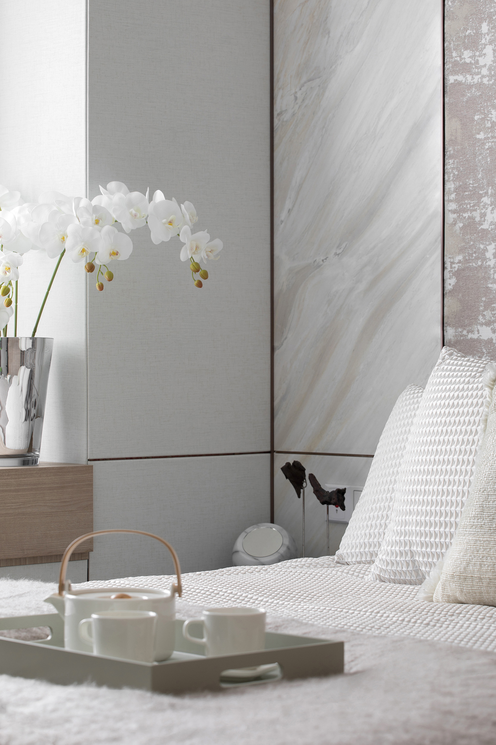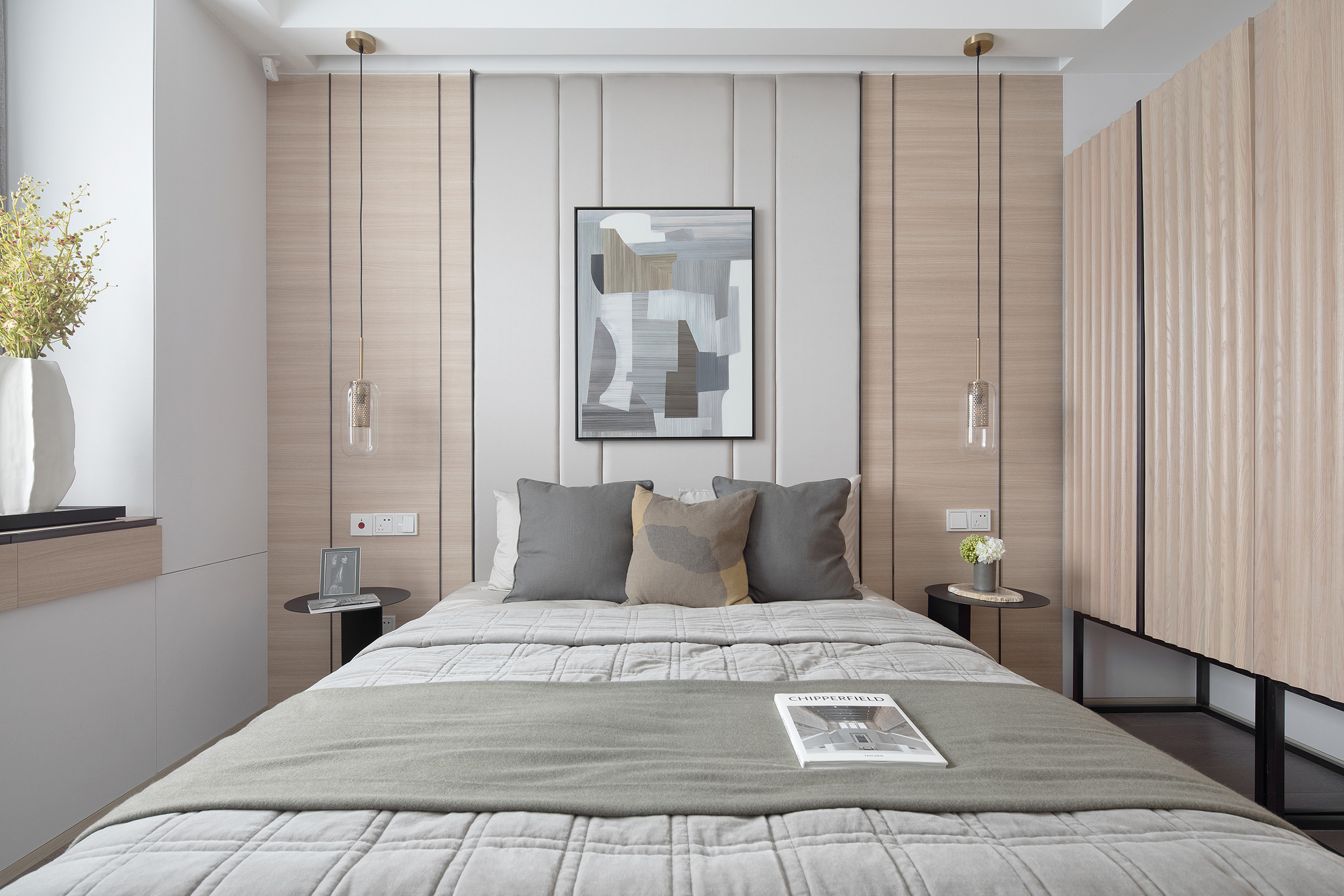 Showflat was designed for the Shanghai Parkview Garden, with the aim to design an elegant and fresh apartment by using a light wooden floor and a simple white tone. This fundamental hue is lined with warm gray wallpaper, and a light woody tone to create a calming experience at home. The entrance and the living and dining room face the large windows indoors, and abundant natural light floods every space, making the interior bright and transparent. Coupled with simple light gray curtains, the space is comfortable and warm without the slightest sense of oppression.