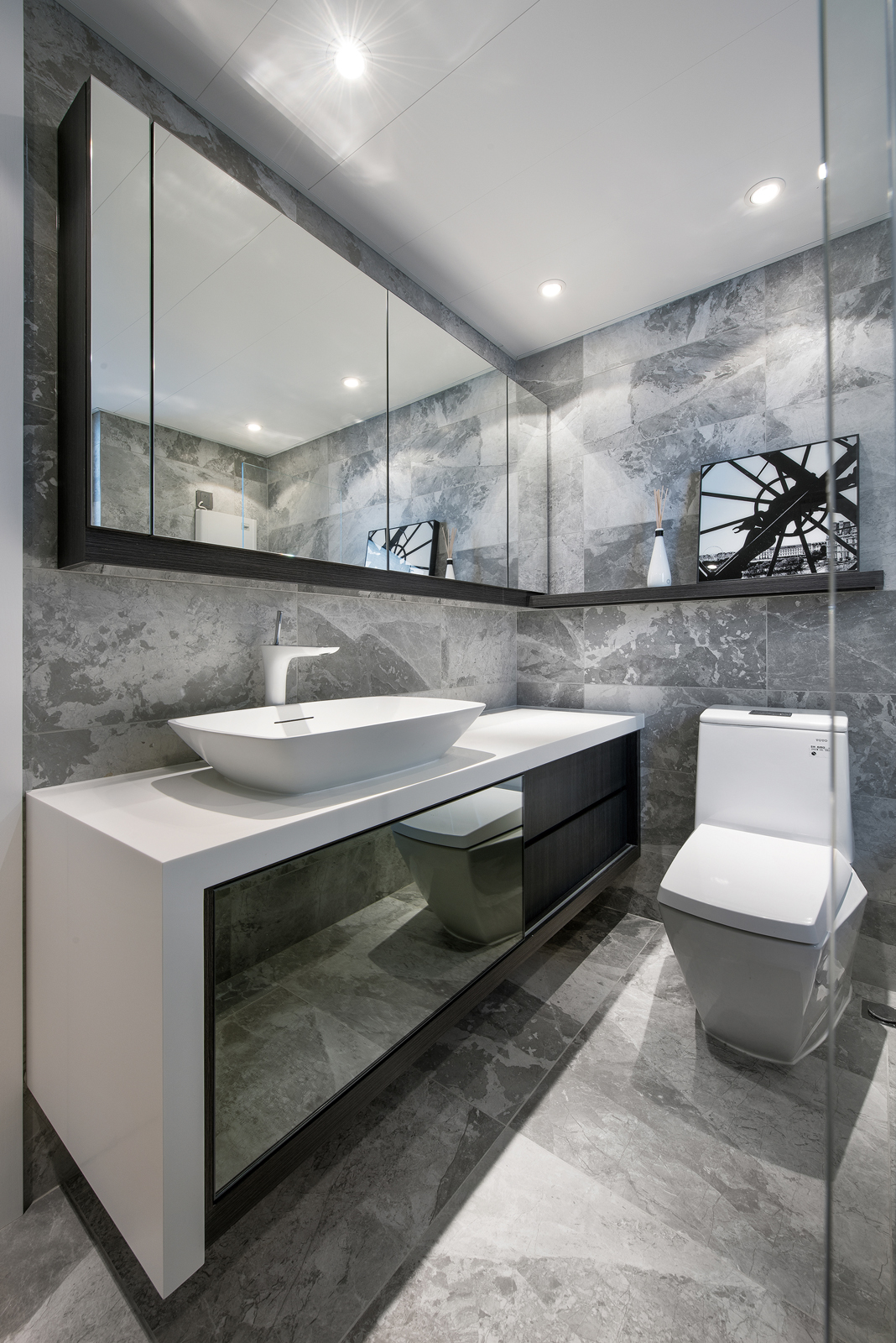 The house owner is a model and camera hobby collectors, hoping to show his collections around like a ‘showroom’, so this particular focus on how the designer to show his collection became the design theme of home.All the glass shelves can be adjusted the level to let the house owner put different size of his models. The designer has also thoughtfully included mirrors in the glass cabinets, which help to showcase both the front and back of the models. Coupled with the use of spotlight, the models come to life in the cabinet.