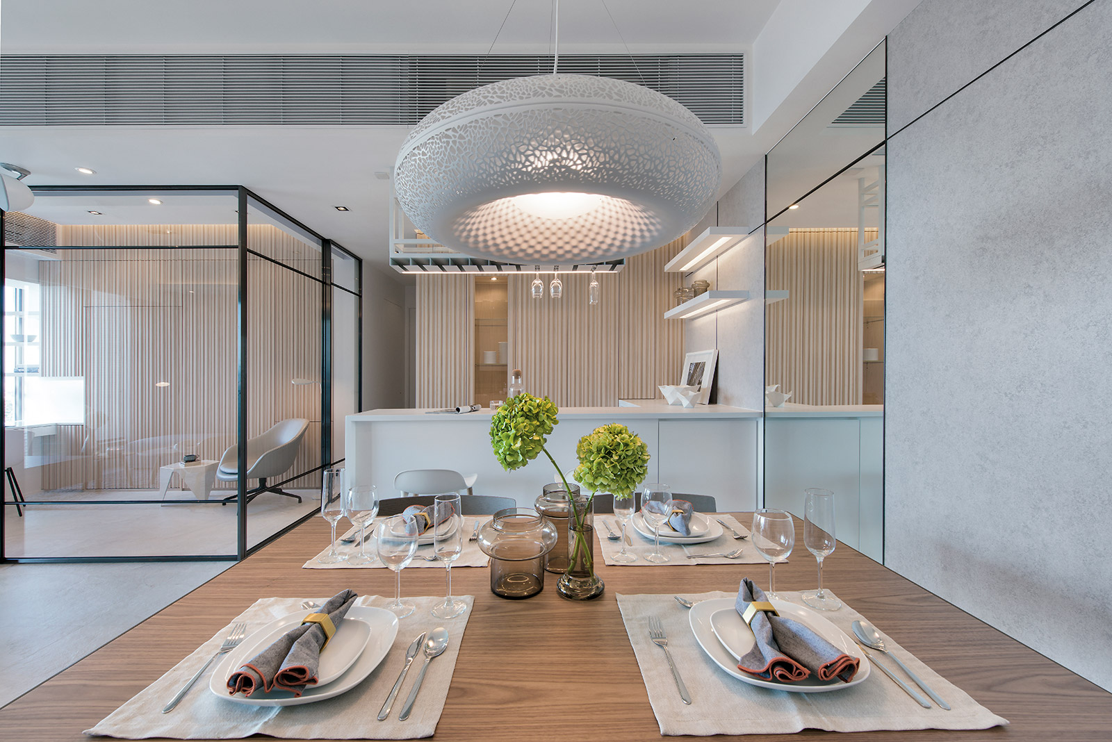 Design connected the dining room and social areas. Through the integration of wooden elements, it created a warm welcome to the guests and owner when having gatherings.