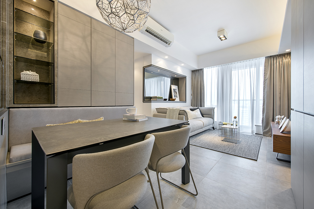 The unit selects a smooth and neutral grey as the main theme to create the ultimate modern and chic design. By properly matching the combination of materials and colors, the visual temperature is enhanced and created a comfortable feeling, and a stylish home design.