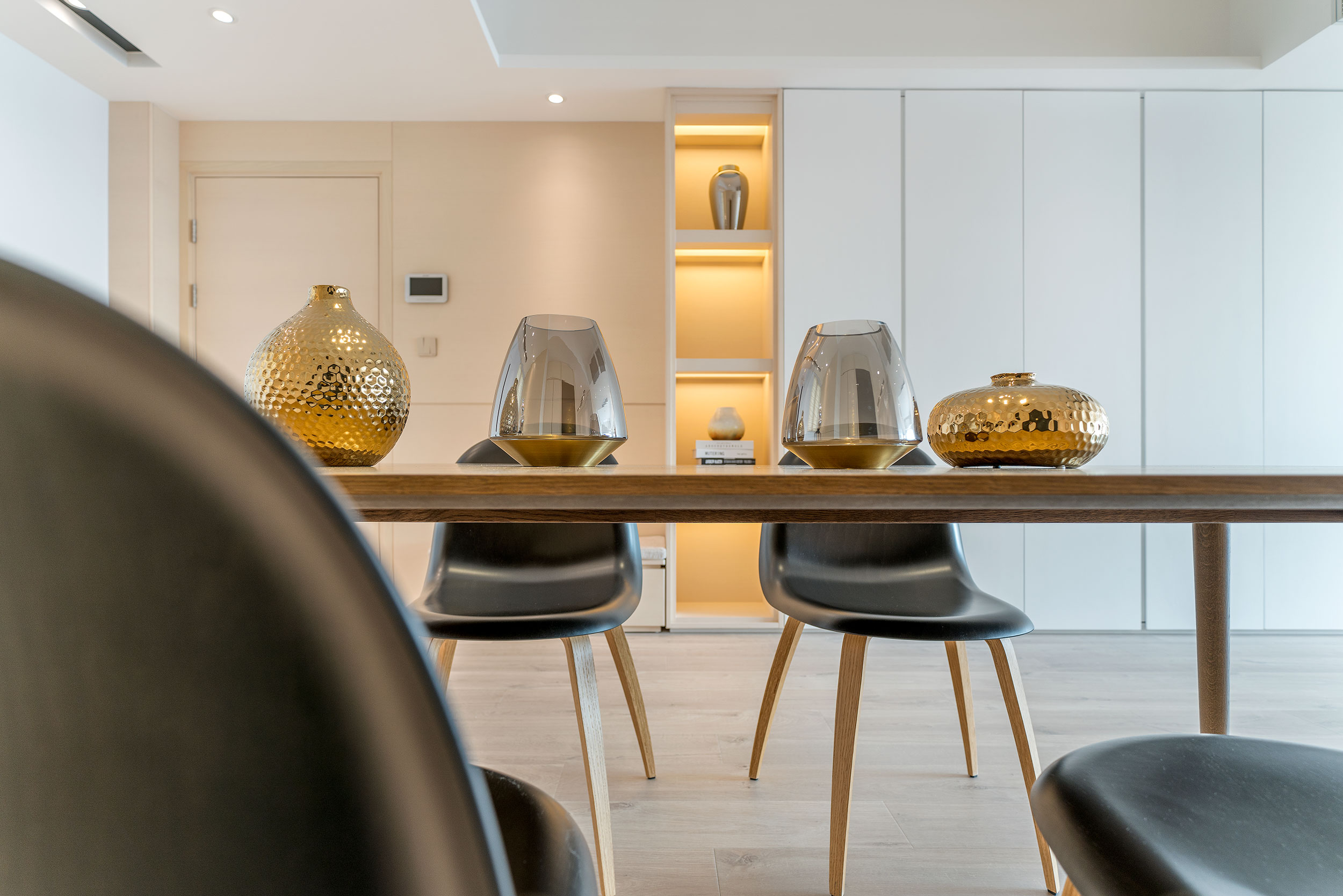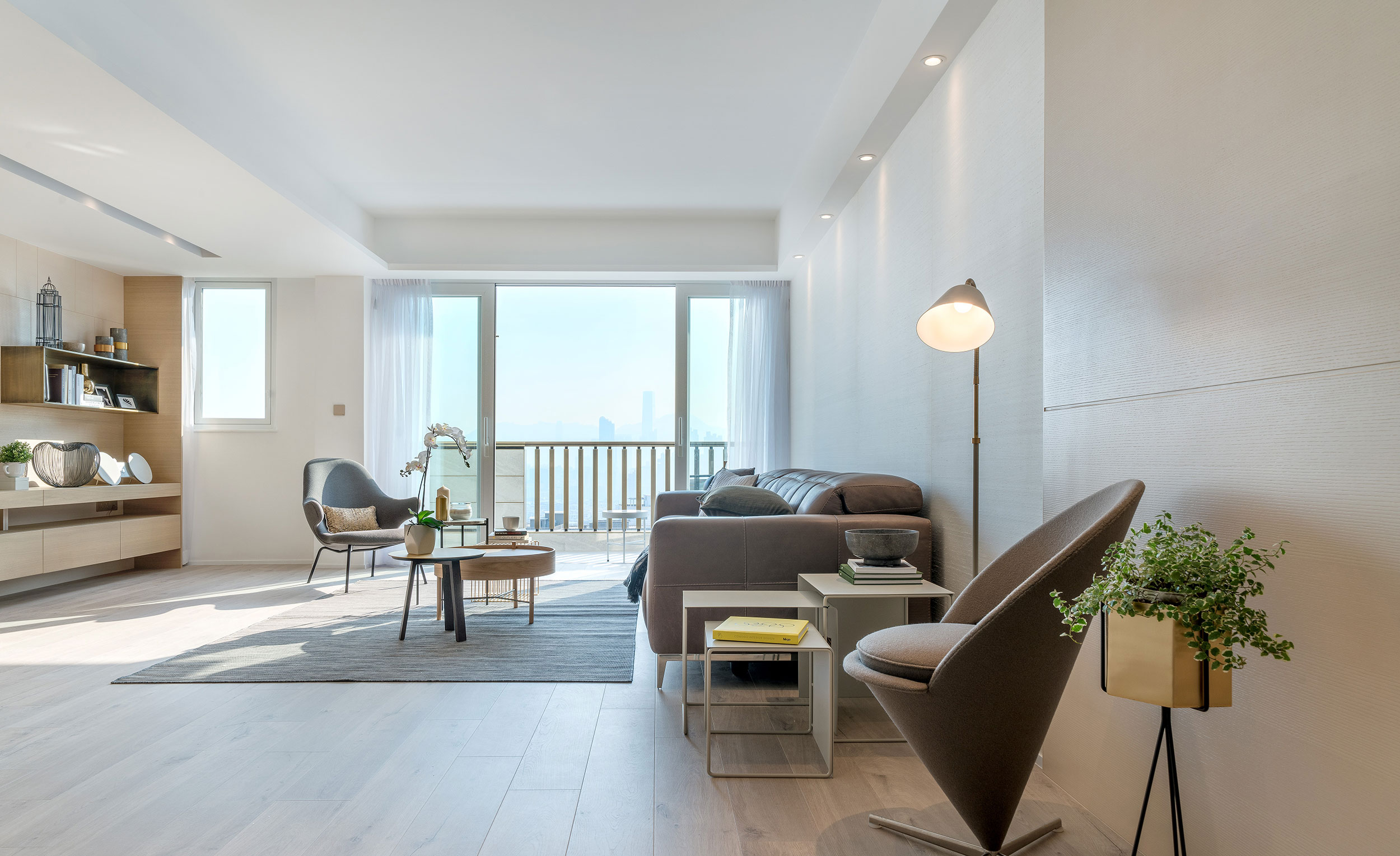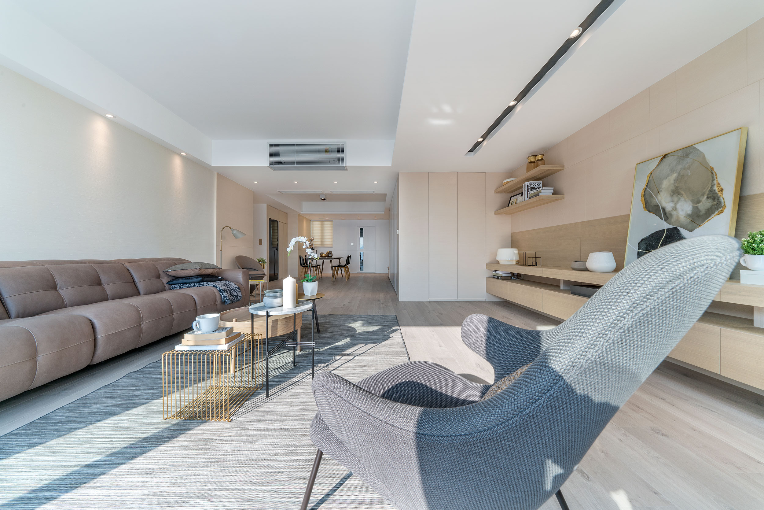 As the owner is a newly retired couple who enjoys art collecting, the design is especially considered for their living after their retirement while designing a stress-free atmosphere. The apartment consists of 2 bedrooms, 2 bathrooms, 1 study room, and a kitchen. Taking into account the space requirements of the two after their retirement and their collection of artworks, the designer reserved a wider aisle distance, and built the display and storage unit along the living room, corridor to the bedrooms, maximizing the use of space and remaining spacious.