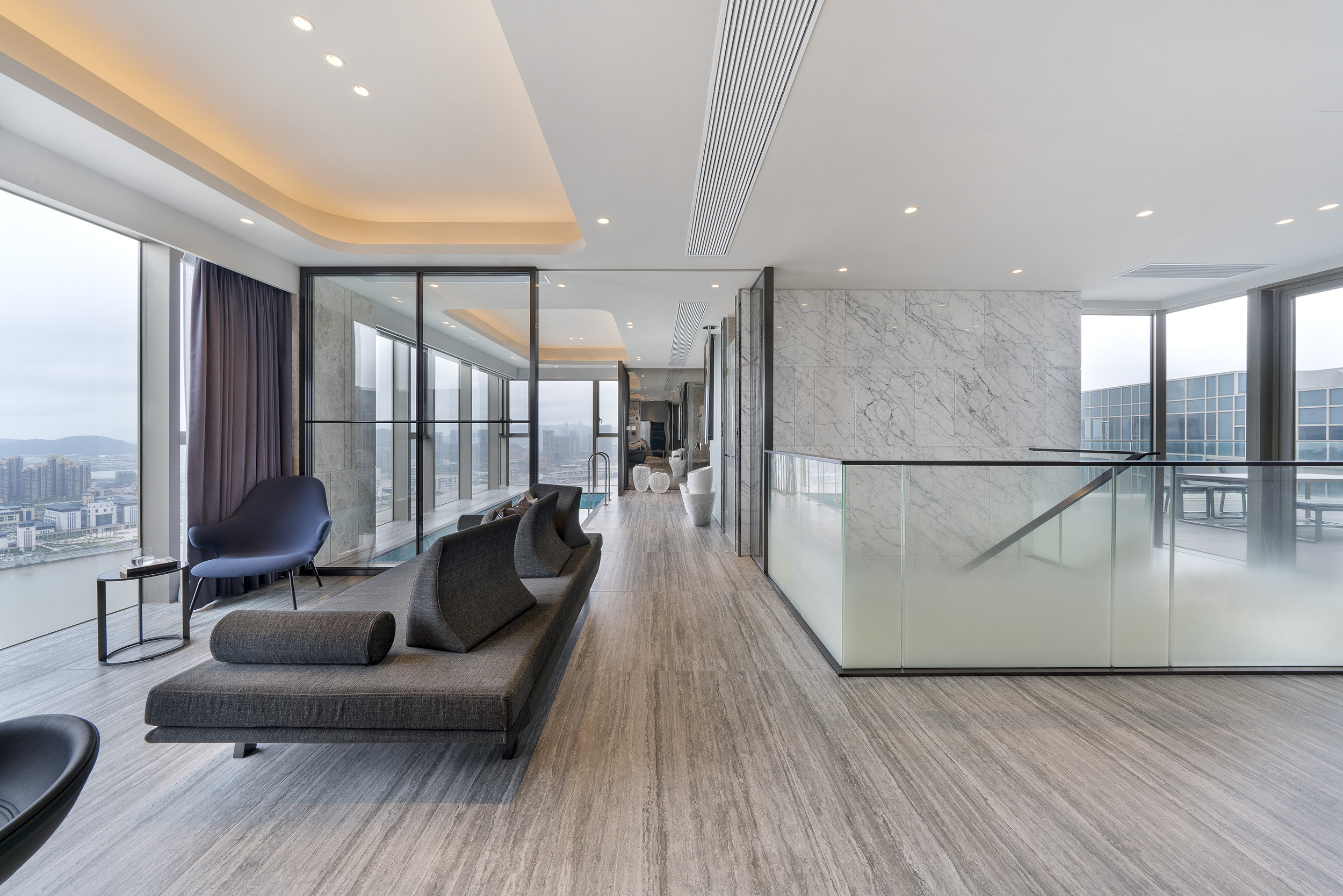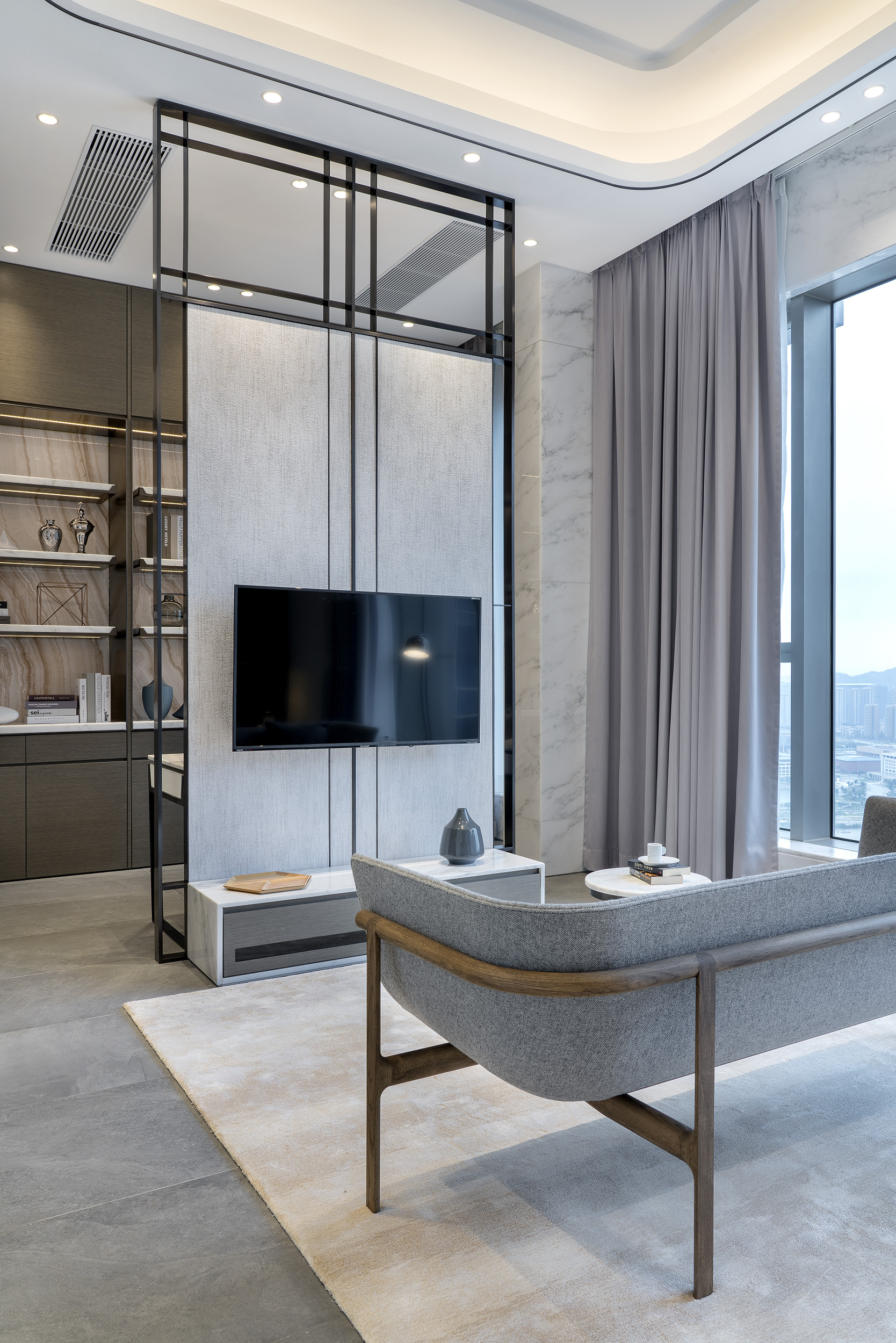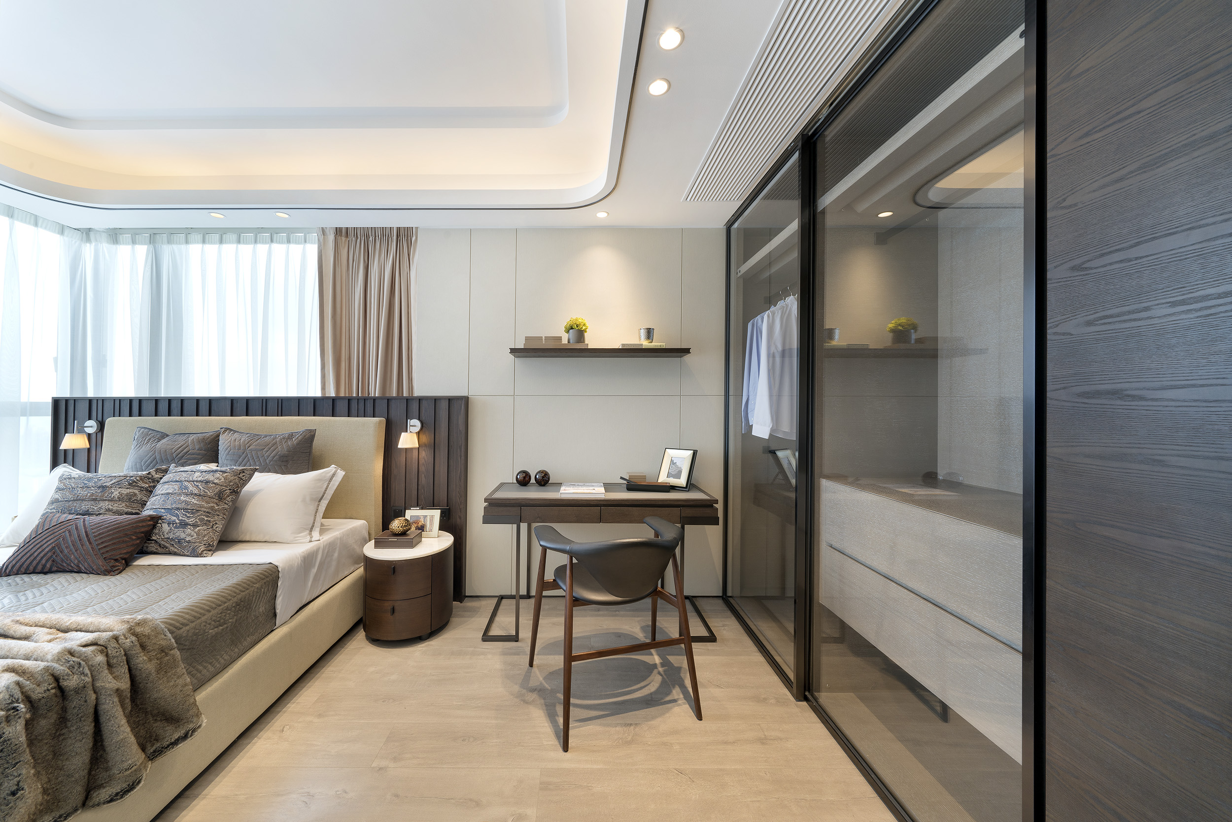 A show-flat project for a young couple living in a nuclear family consists of 4 bedrooms, a gym area, bar area, and an outdoor roof. The unit is designed in a calm and minimal atmosphere with the interior is unified with a gradient of black, white and grey textures in order to merges with the lifestyle to escape the hustle in the midst of city life. Bar area on the second floor is the private spot for the owner to having guests linger in the space. It's designed to refine the existing facilities, recreates an exclusive, sophisticated and luxury details with more subtle yet stylish undertone tones to convey young living in the new form of luxury.
