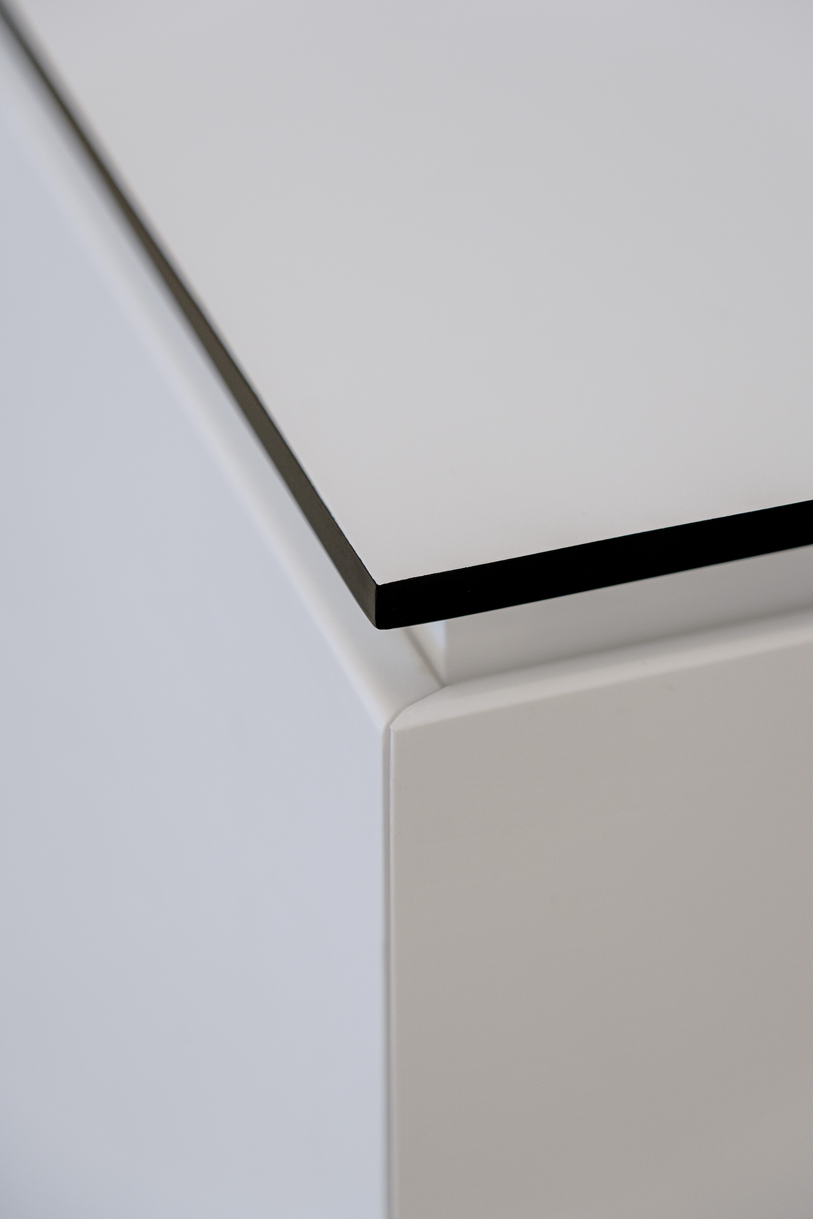 The unit uses pure white tones, ultimate design details with natural materials with minimalist spatial design to create a simple design for the more gentle and pressureless atmosphere. Using black wooden lines around the storage cabinet, ceiling and wall, the contrasting lines look like a frame in different perspectives of the unit, adding a lot of visual impacts and creating a layered effect.