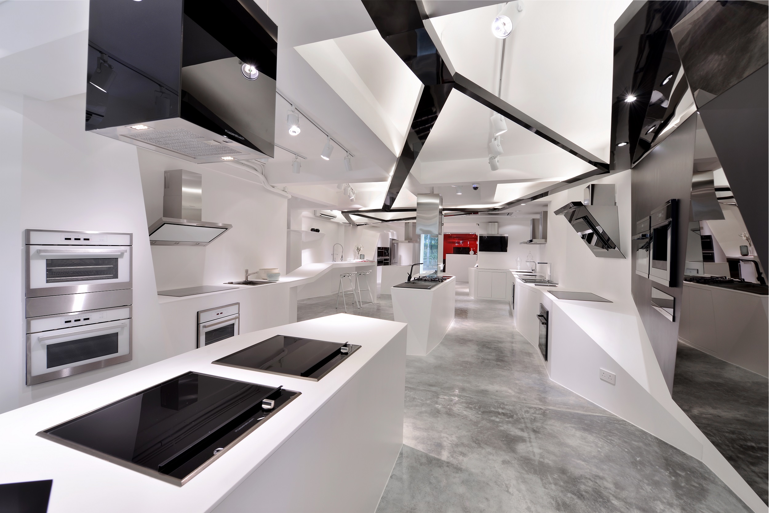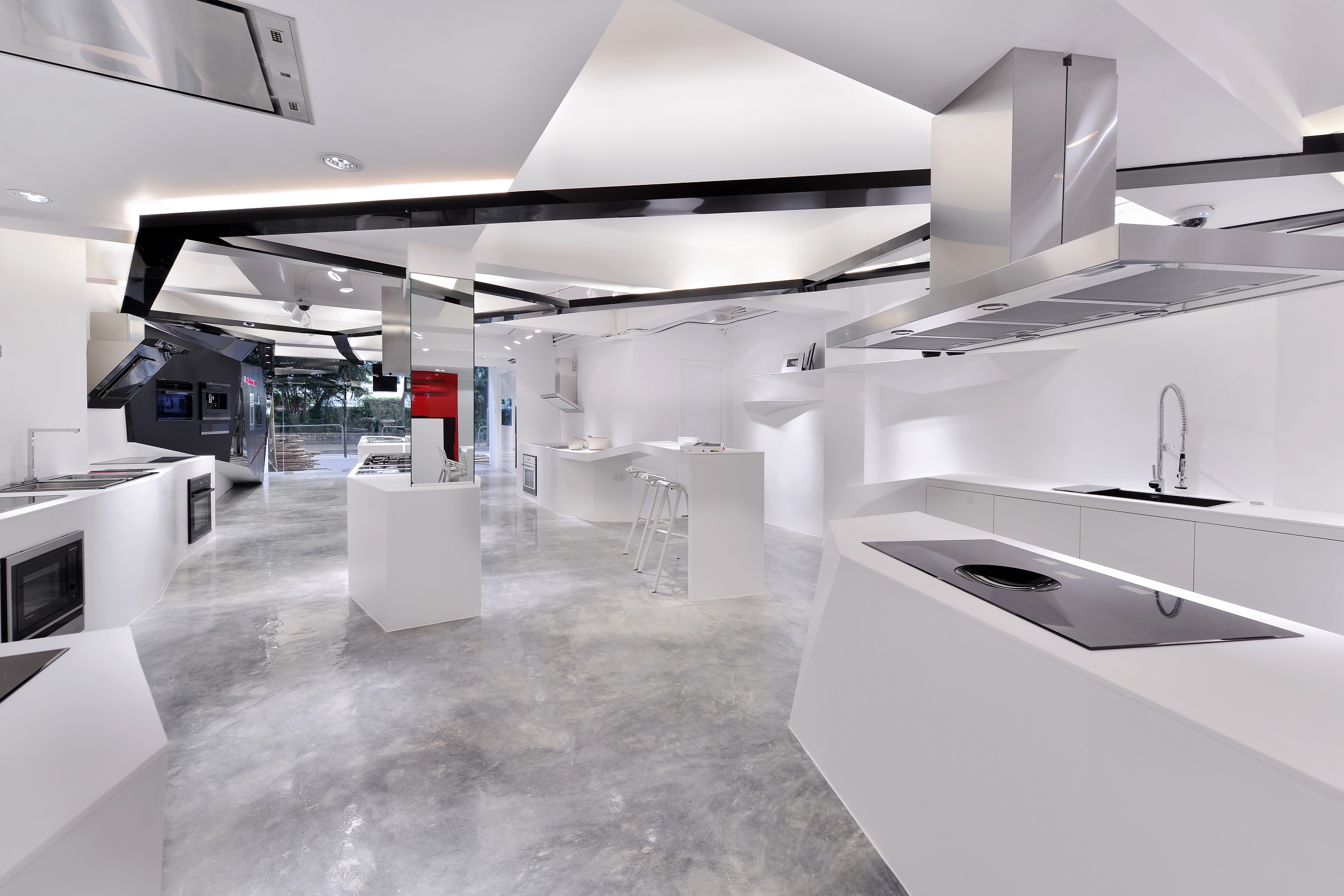 The interior is a reflection of the products themselves. We are inspired by the unique choices of materials, color and shape of the product’s award-winning design. An irregular geometry is the center of the design which used to highlight the lines and technology of the products.