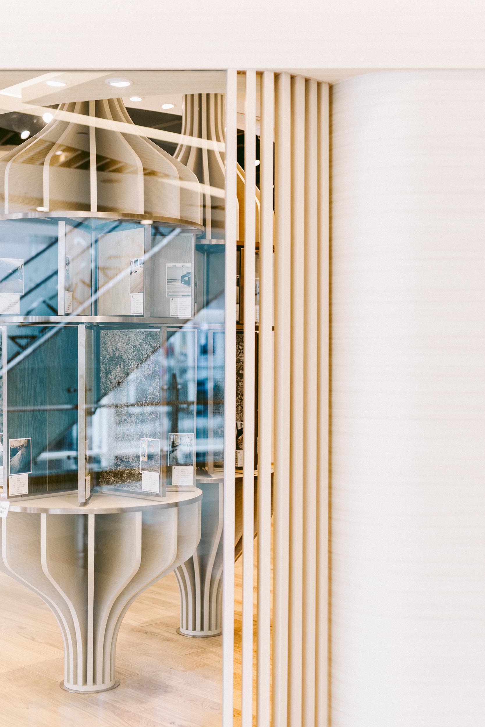 Our design of the new showroom for Tat Ming Wallpaper Company located in Shatin and covered an area of 737 sq. ft. Regards to its diversified home decorating products, the overall design combines simple aesthetics, focus on a harmonious combination between materials, form, colors and the product itself. With the great planning at space and design, the customers will feel welcoming and warm when they visiting the store.